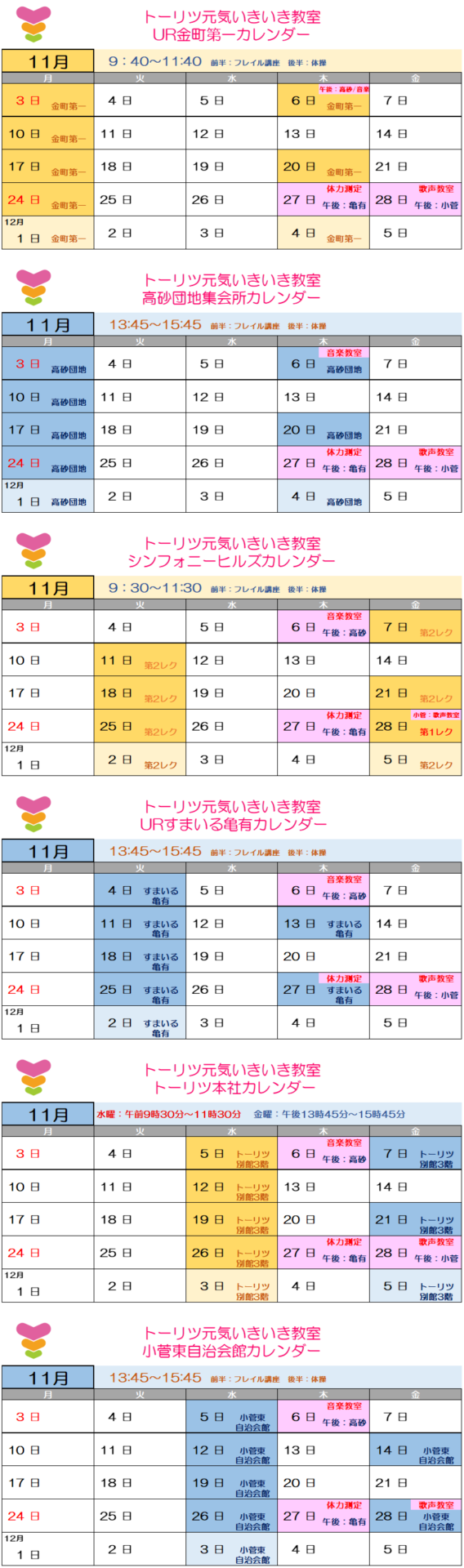 元気いきいき教室の皆さん、11月のカレンダーが出来ました。