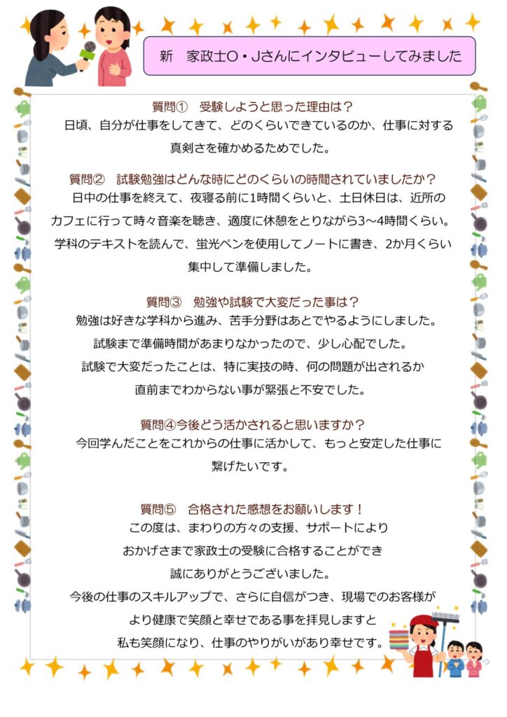 今回は、家政士試験に合格した家政婦さんにインタビューしたもの等をまとめました✨