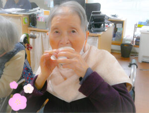 そして、おやつには桃のプリンと甘酒をご用意しました。