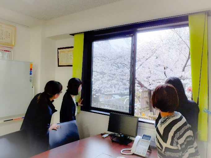 【関東で桜が満開】株式会社トーリツ本社のオフィス内で楽しむ特等席の花見風景